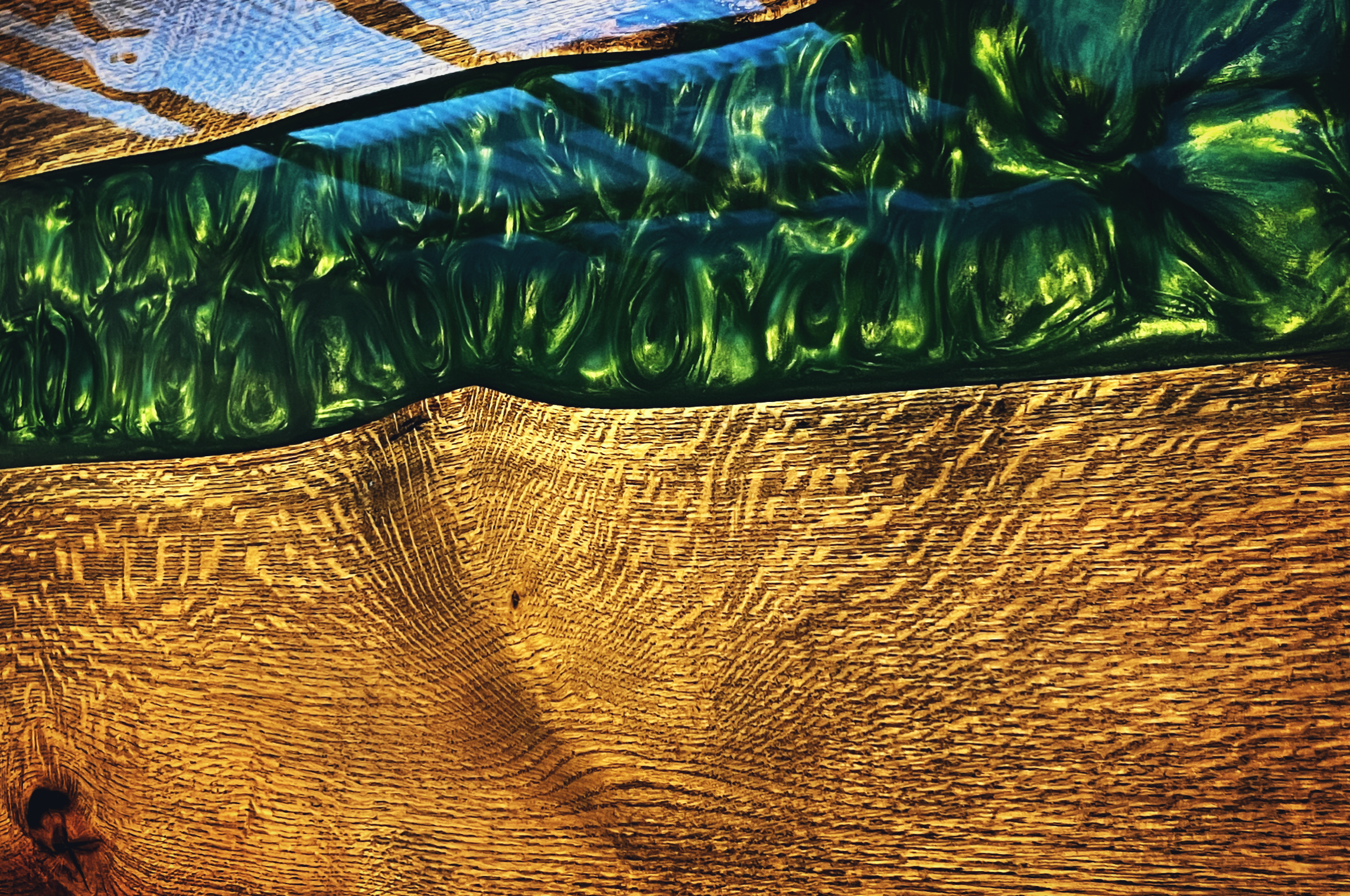 Natural hardwood meets a hand-poured stream of jeweled epoxy, creating a one-of-a-kind item full of color and movement.